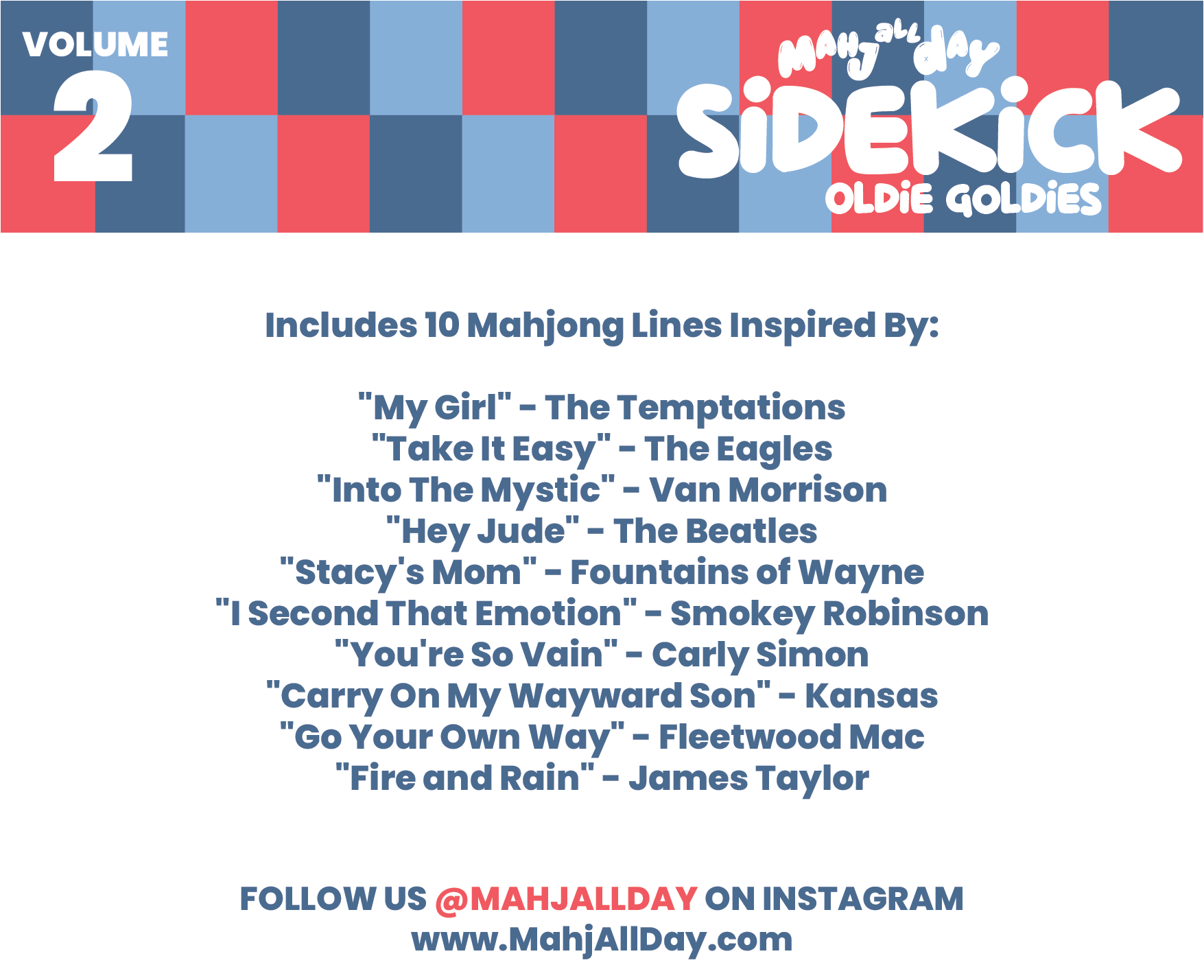 Now - let's get to the fun - MAHJ ALL DAY Sidekick Volume 2 features lines inspired by the following Oldie Goldie tunes!